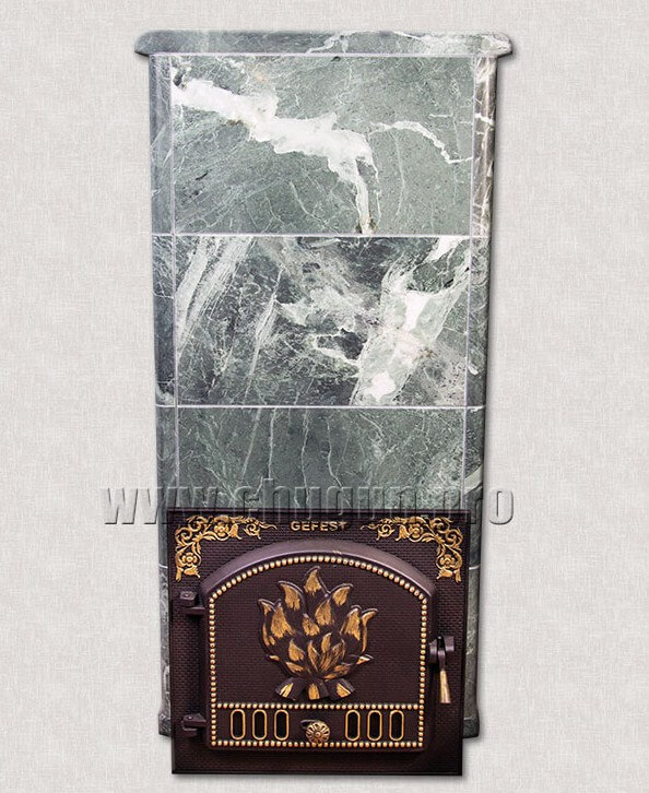 Модель экономна, быстро прогревается и много отдает тепла. Передняя часть портала красиво декорирована литьем.