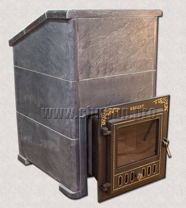 Печь для бани Гефест ПБ-03 М Президент — оптимальный вариант отопительного прибора сауны или русской парной среднего размера. Улучшенная новинками чугунная конструкция «одета» в натуральную каменную облицовку из талькохлорита. Плитка способна быстро нагреваться и порционно отдавать тепло даже после прекращения процесса горения. Образует мягкий мелкий пар.