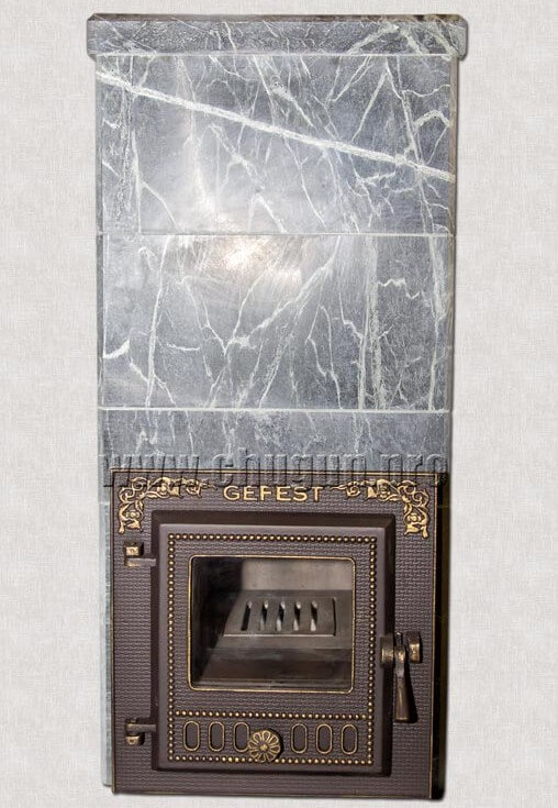 Красивый дизайн двери со стеклянным окном для наблюдения огня украсит интерьер помещения.