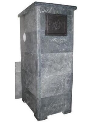 Печь Гефест ПБ-01 М Русская парная в талькомагнезите состоит из просторного топочного портала, герметично закрытого дверью с панорамным стеклом, широкой нижней части дымохода. Чугунные стенки имеют конвекционные ребра, позволяющие аккумулировать тепло и отдавать облицовочной плитке. Процесс горения при участии пламегасителя и системы догорания газов оптимально равномерный и энергосберегающий. Пар мелкий, легкий, насыщается минералами от природных камней.