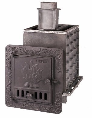 Широкая топочная дверца с литым узором украсит любой уголок предбанника или основной комнаты.