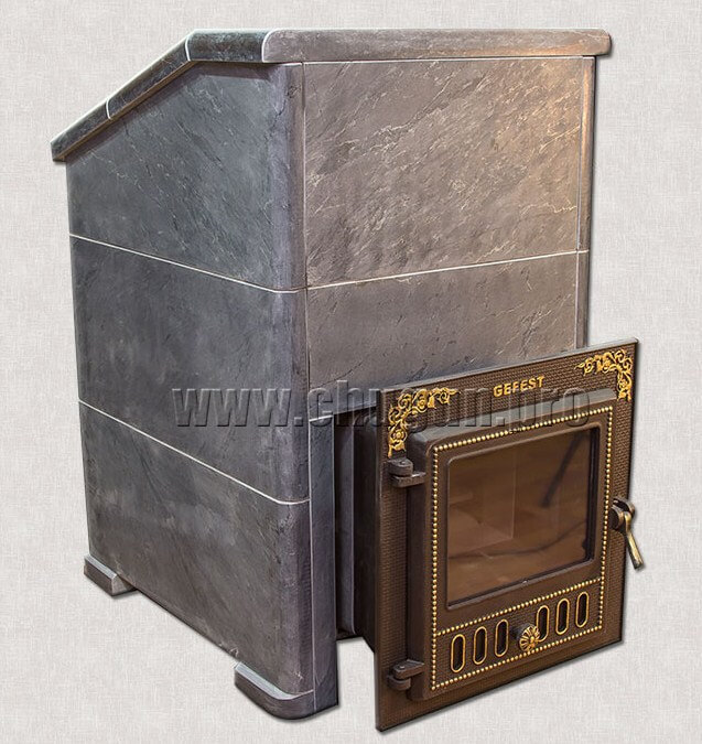 Печь банная Гефест ПБ-03 М Президент в талькомагнезите улучшенный, эстетично оформленный вариант обогревательной конструкции из высококачественного чугунного сплава. Отличается экономичностью, максимальной отдачей, безопасностью эксплуатации, простотой монтажа. Рекомендуется к применению в помещениях парилок саун для производства пелены теплого мелкого пара. Одна закладка топлива в портал обеспечивают оптимальную устойчивую температуру на протяжении нескольких часов сеанса.