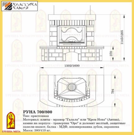 Облицовка для камина Руна 800 (МЕТА, Магия Огня)