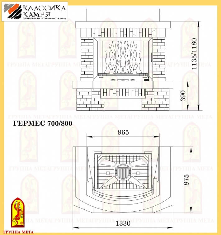 Облицовка Гермес 700/800 подходит для топок: Панорама 700, Панорама 700П, Панорама 800П