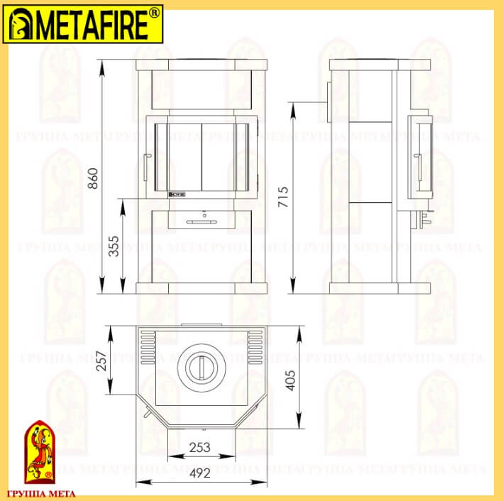 Печь Ока имеет компактные размеры. Размещается в основном вдоль стены. Корпус выполнен из стали, покрыт жароустойчивой краской. Топка выложена огнеупорными плитами. При наличии любых дефектов их легко можно заменить новыми. Над топкой размещена конфоркой для разогрева пищи.