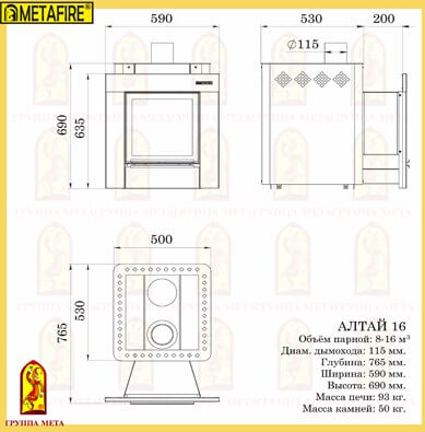 Дровяная печь для бани «Алтай 16» рассчитана на небольшие парильные помещения с объемами до 16 м3. Вместительная каменка позволяет загружать до 50 кг камней и создавать комфортный микроклимат с помощью обширного пара. В конструкцию печи включена выносная топка с прозрачным термостойким стеклом. Стенки «Алтай 16» покрыты специальным составом из кремнийорганической эмали для повышения жаростойкости. Печь изготовлена из высокопрочной стали, способной выдерживать максимальные температуры. В качестве топлива применяются дрова из различных пород дерева.