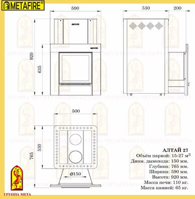 «Алтай 27» считается одной из наиболее функциональных и практичных дровяных печей, разработанных компанией МЕТА. Объем парильного помещения для данной печи рассчитан на 15-27 м3. Диаметр вертикального дымохода составляет 115 мм. Печь изготовлена из прочных листов термостойкой стали с покрытием из кремнийорганической эмали. Вместительная каменка позволяет загружать до 60 кг камней и получать насыщенный пар. Печь отлично подходит как для финских саун, так и для традиционной русской бани.