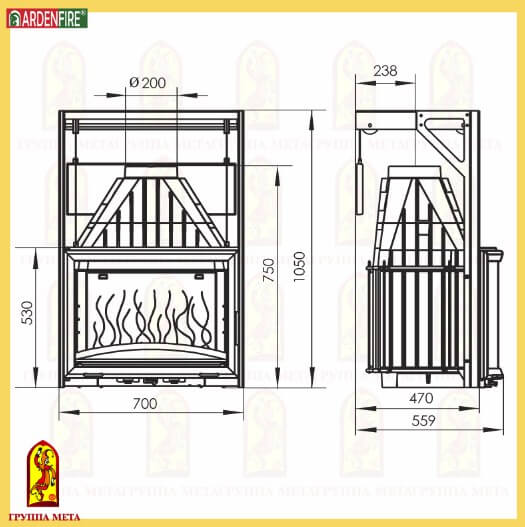 «Панорама 700П» - это относительно недорогая модель чугунной топки с мощностью в 14 кВт. Одной из основных особенностей этой модели является то, что в ней есть специальная система, которая поднимает дверцу, которая закрывает угли и огонь. Стекло также с легкостью защищает пользователя от огня, но позволяя при этом наслаждаться пламенем. С помощью «Панорамы 700П» можно отопить около 150 квадратов и выше, в зависимости от материала облицовки и её типа.