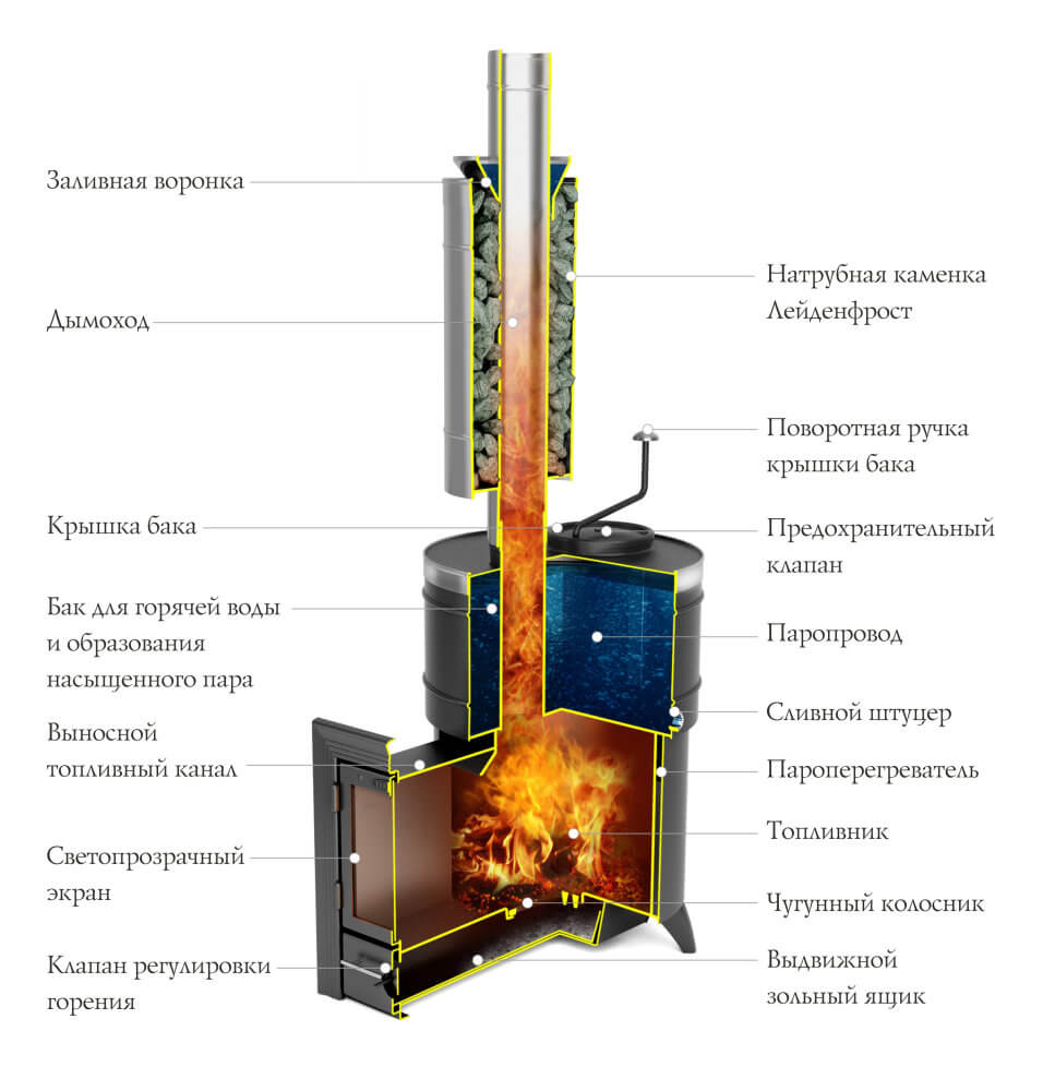 Печь Скоропарка 2012 Inox создана компанией «TMF» для поклонников настоящей русской бани. Встроенный в конструкцию бак на 40 л выполнен из нержавеющей термостойко стали. С его помощью печь вырабатывает перегретый водяной пар, достигающий температуры в 400°С. При этом печь Скоропарка 2012 Inox протапливает помещения за короткий срок без лишних вмешательств со стороны человека. Имеющиеся регуляторы позволяют выставлять режимы русской бани: от мягкого микроклимата до экстремально высоких температур.