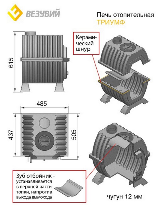 Одна из лучших по качеству моделей от компании Везувий, «Триумф 180», заработала репутацию благодаря своим отопительным качествам и использованию лучших материалов, за счет использования которых долговечность достигает рекордных результатов. Мощность печи на практике позволяет обеспечить отоплением большой коттедж до 150 м3.